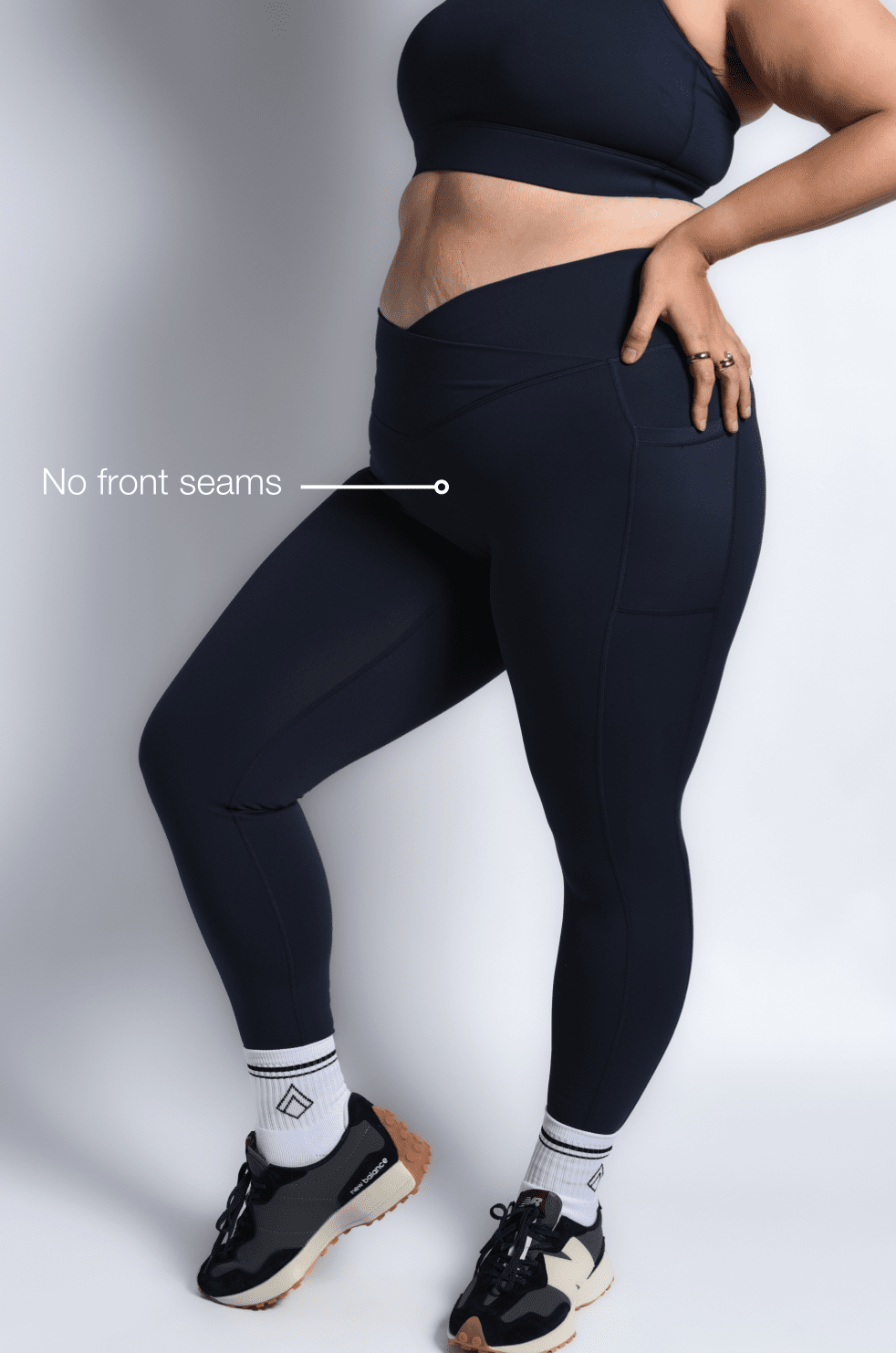 These leggings are the definition of barely there support with just enough hold to feel secure. The crossover waistband creates a flattering V cut that stays put, while the no front seam design means zero distractions and total confidence.