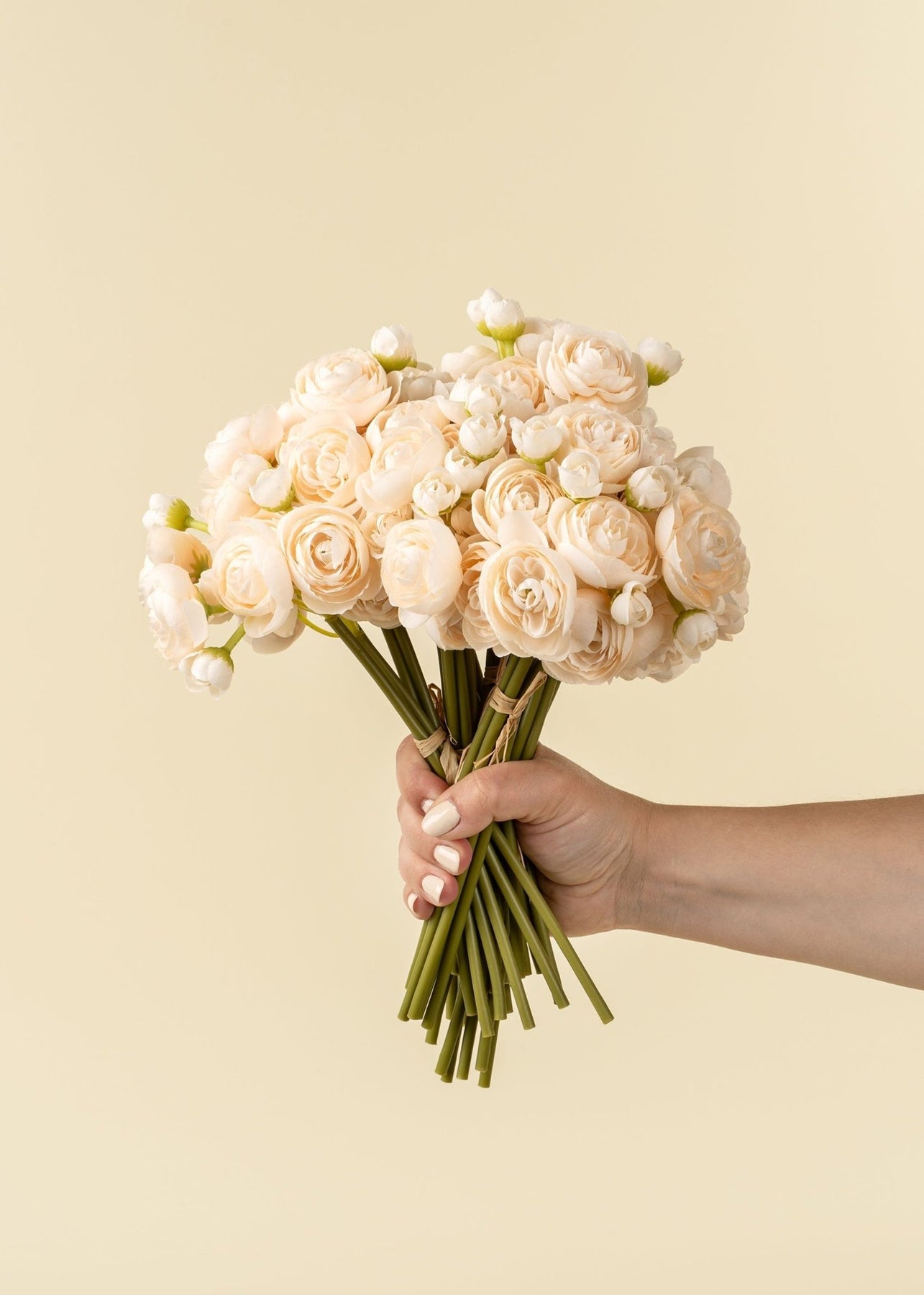 Our Ranunculus Bouquet in Cream brings the delicate beauty of fresh-cut florals without the upkeep. Each lifelike stem captures the romantic charm of real ranunculus, soft, layered petals and gentle curves that add effortless elegance to any space.