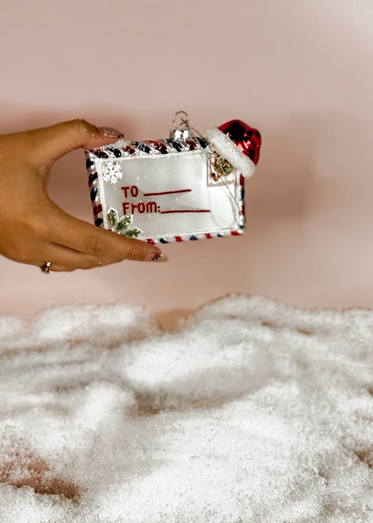 The sweetest holiday tradition captured in glass. The Letter to Santa Ornament brings back the joy of handwritten wish lists, complete with a charming present tag design and glittered details that sparkle under the lights.