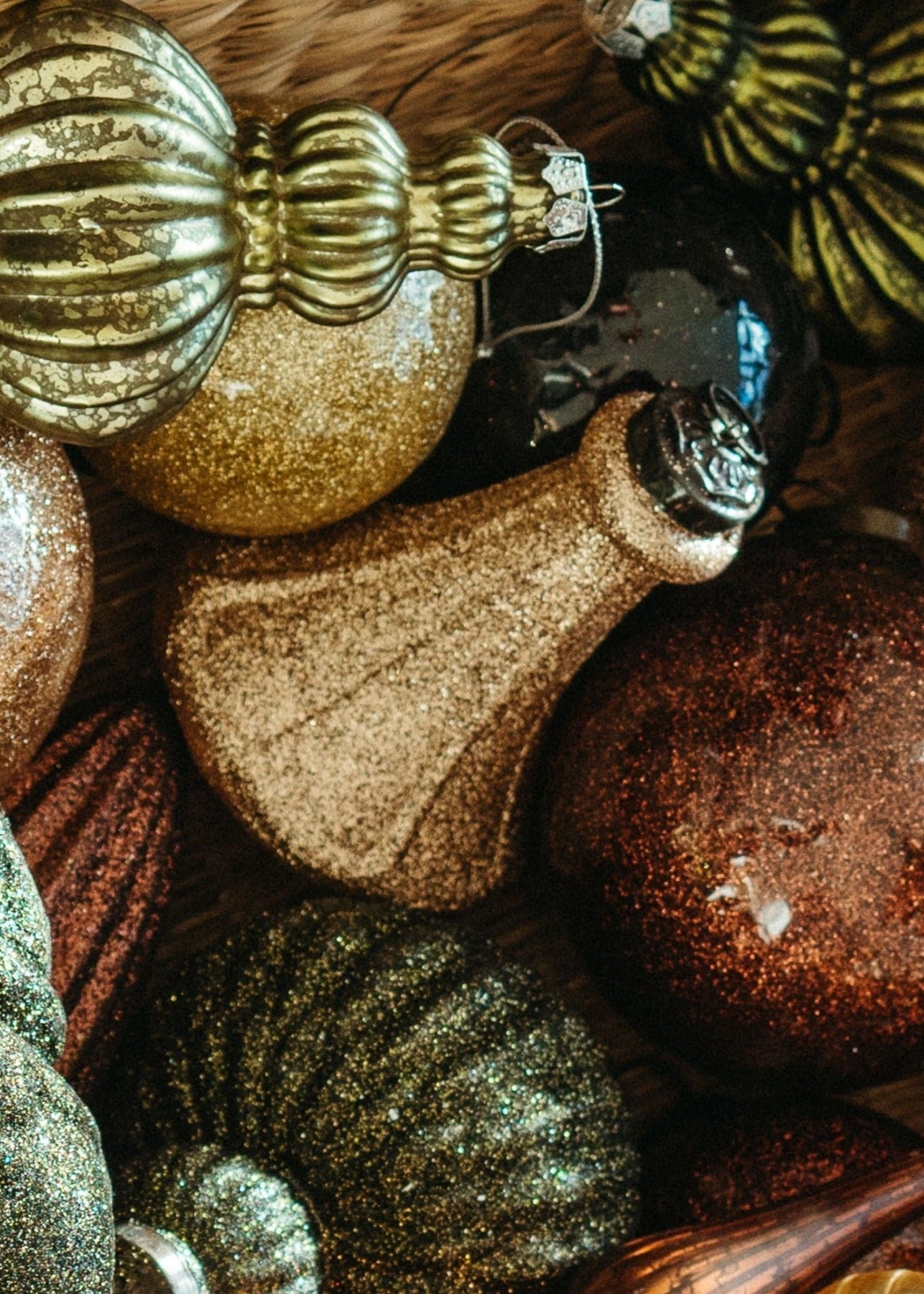 The Shimmer Ornament in Rose Gold is crafted in India with rich tones, glass detail, and just the right amount of sparkle. Its unforgettable shimmer makes it a statement piece on the tree, while its versatile size also allows it to shine styled in festive bowls, baskets, or layered into holiday tablescapes.