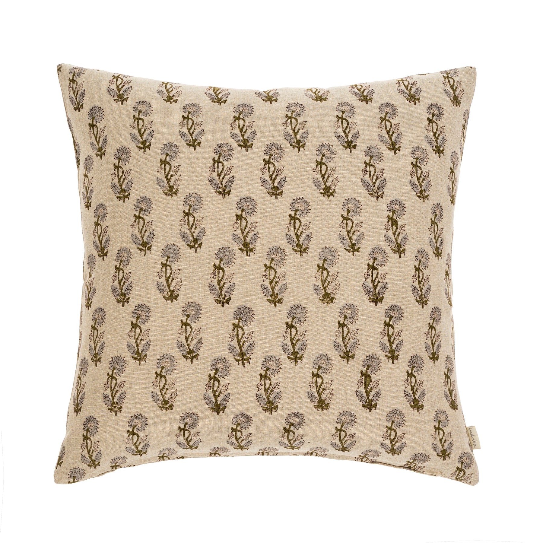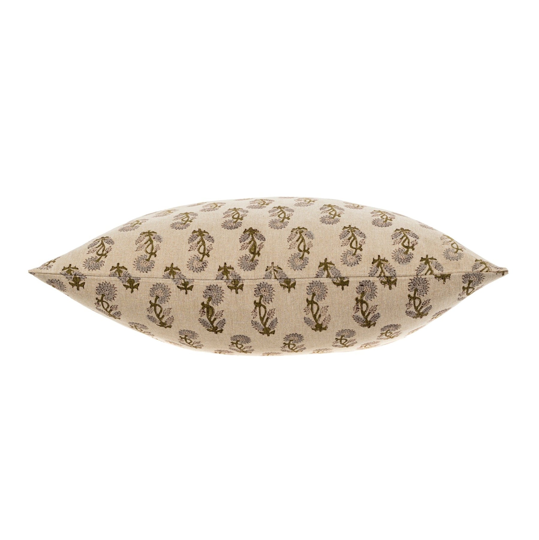 Our Neha Block Print Pillow brings playful elegance to your space with its hand-block printed floral motif in lilac and olive green. Set against a soft natural background, each pillow is a celebration of craftsmanship, no two are exactly alike, making every piece feel uniquely yours.