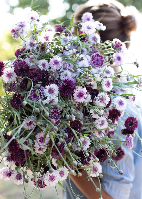Bachelor’s Button ‘Classic Magic’ brings depth and intrigue to the cutting garden with its rich mix of inky black, deep plum, and striking purple-and-white bicolour blooms. It feels both nostalgic and unexpected, the kind of flower that adds contrast and character without overpowering everything around it. A true must-grow for gardeners who love a slightly darker, more romantic palette.