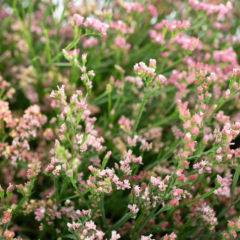 Statice ‘Sunset Mix’, also known in the trade as QIS Apricot, is widely considered one of the very best statice varieties you can grow. With papery blooms in soft sherbet shades of rose, peach, orange, apricot, and pale creamy gold, this mix brings warmth and depth to both fresh and dried arrangements. The colour range blends effortlessly with everything from muted neutrals to richer autumn tones, making it endlessly versatile.