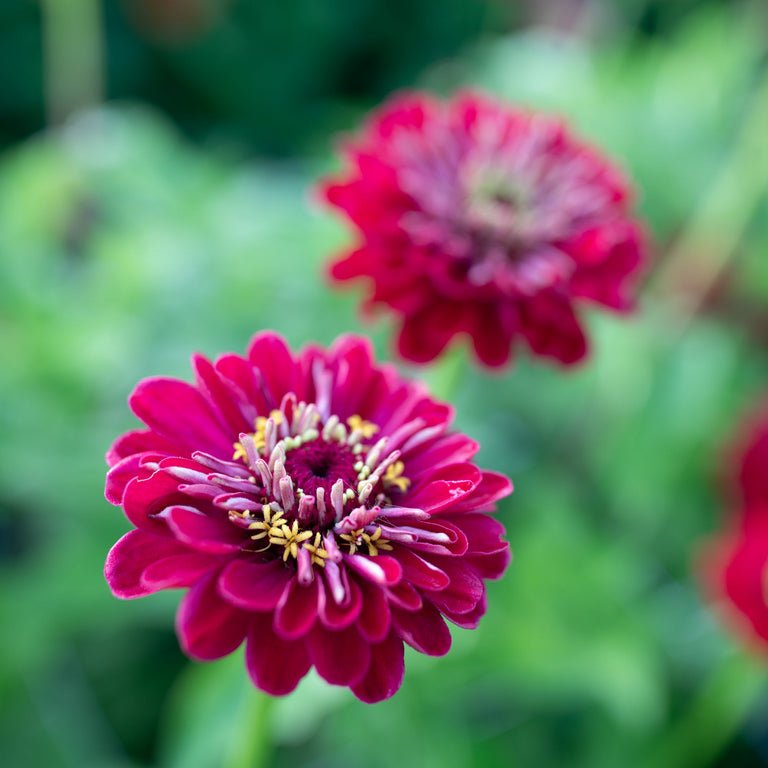 Start seeds indoors 4 to 6 weeks before last frost, then transplant outdoors once all danger of frost has passed. Zinnias can also be direct-seeded after the weather has warmed. Pinching encourages branching and more blooms.
