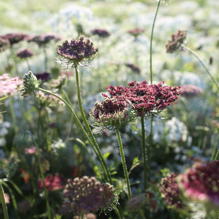 Chocolate Lace Flower ‘Dara’ is a showstopper in the cutting garden. With its rich burgundy-chocolate tones and wide, lacy umbels, it brings depth and drama to arrangements while still feeling light and airy. Planted en masse, it creates an unforgettable display, and in bouquets it pairs beautifully with nearly everything, from soft pastels to bold, saturated hues.