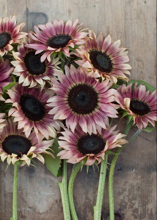Sunflower ‘Ruby Eclipse’ is a true garden workhorse with serious style. One of the fastest-flowering varieties available, it produces a steady stream of bicolor blooms in creamy ivory, dusty rose, and deep ruby red. Each plant branches beautifully, delivering armfuls of flowers over the course of a full month from a single planting.